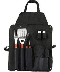 7 PIECE BBQ KIT APRON AND UTENSIL SET BLACK IDEAL GIFT