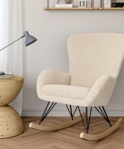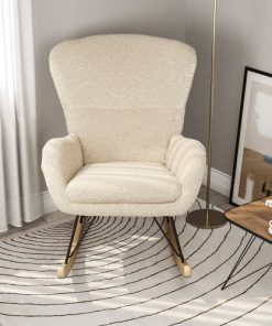 (Cream White) Modern Faux Wool Rocking Chair with Removable Cushion