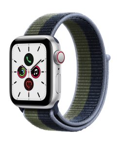 Apple Watch SE, 40mm, GPS + Cellular, Silver Aluminum Abyss Blue Moss Green Sport Loop