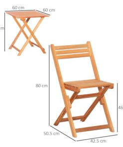Outsunny 3Pcs Garden Bistro Set, Folding Chairs and Table Set Teak