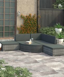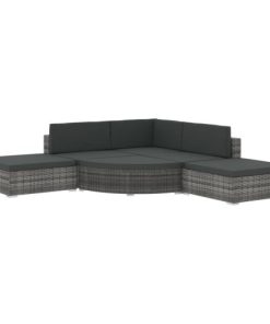 5pc vidaXL 42741 Rattan Garden Lounge Set – Grey | 4 Seater Rattan Sofa Set