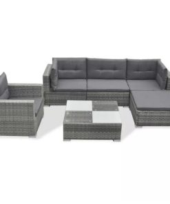 6 Piece Garden Lounge Set with Cushions Poly Rattan Grey