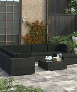 8 Piece Garden Lounge Set with Cushions Poly Rattan Black