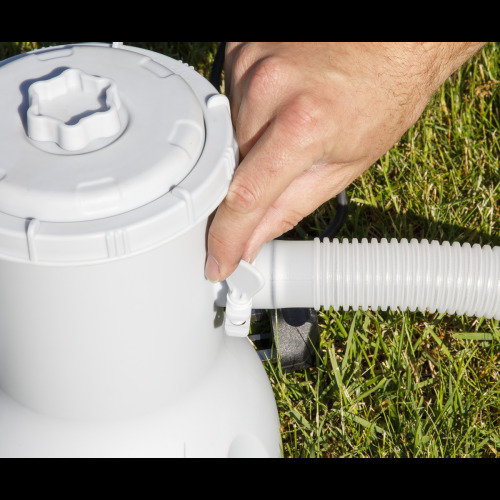 Easy set up in less than 30 minutes with no tools required. Triple layered material for extra strength and durability. Water capacity (80% of wall height): 9481L/(2054gal). Supplied with 530gal/hr filter pump and patch repair kit. Filled Dimension: 450 x 84cm.