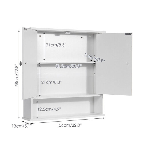 2Door Mirro Bathroom Wall Cabinet Storage Unit G/W Description