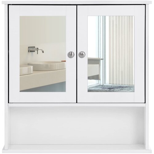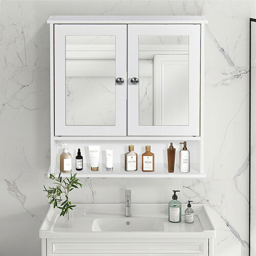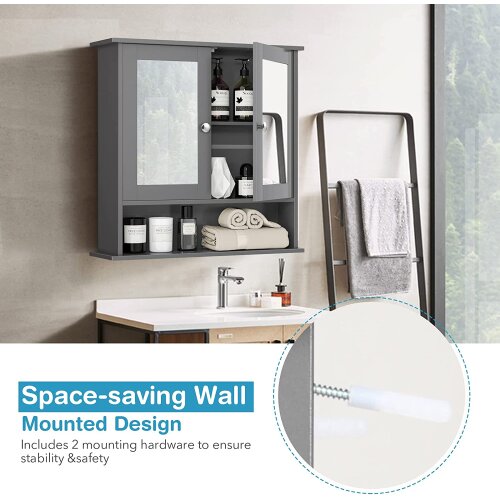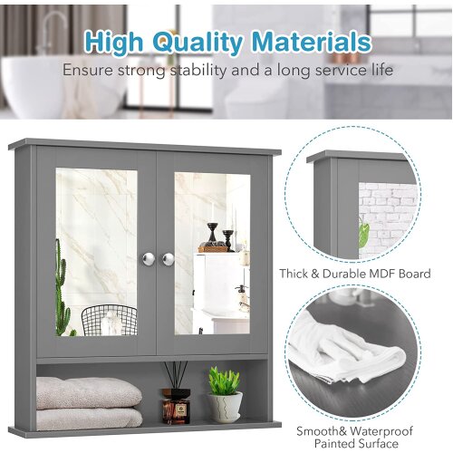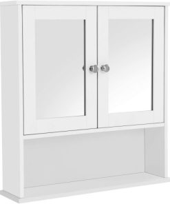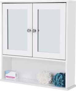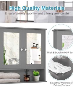 DEPENDABLE MATERIALS:?Made with reliable engineered wood, metal hardware, and durable glass mirrors, this moisture-proof bathroom cabinet is the ideal wall-mounted storage solution for just about any bathroom