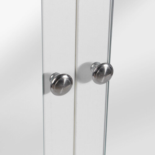 MIRROR ON THE WALL:?Ideal for storing bathroom necessities big and small, this bathroom storage cupboard has a mirror on each door, giving you the ability to easily shave or put on makeup in the morning without needing any space-consuming piece