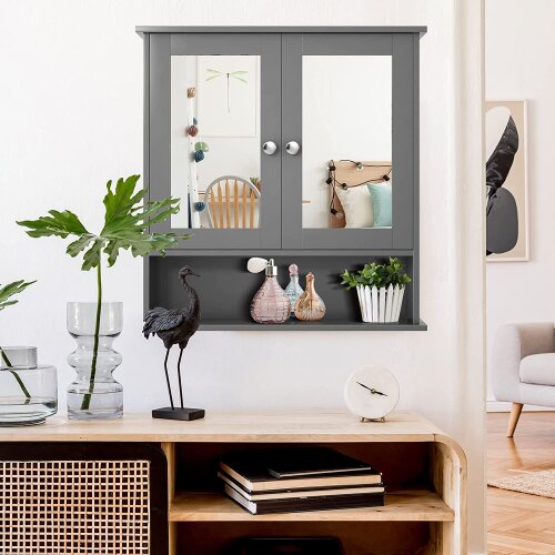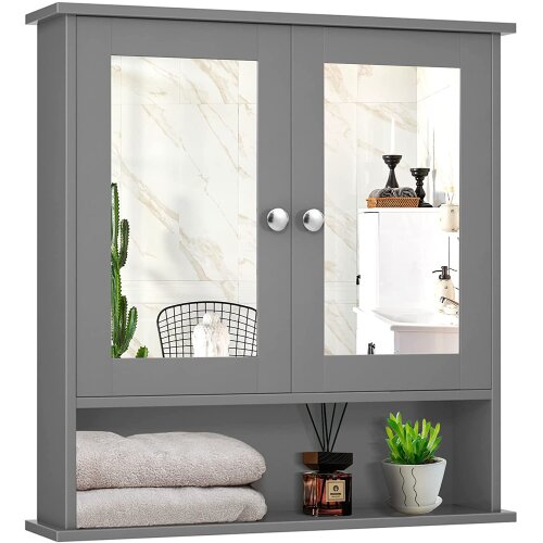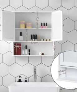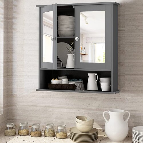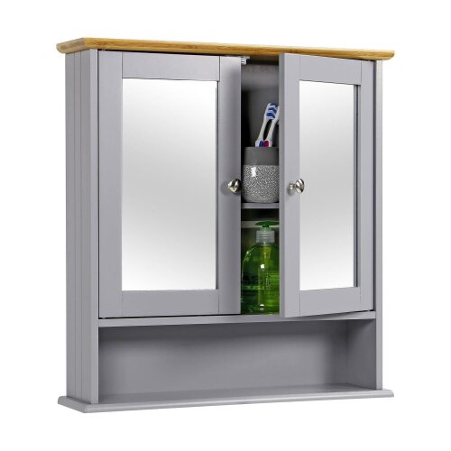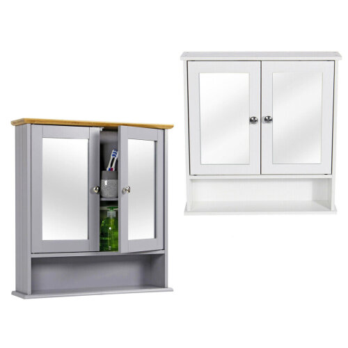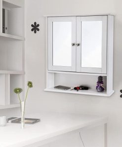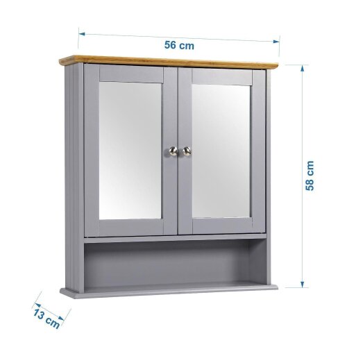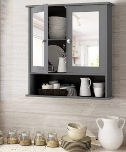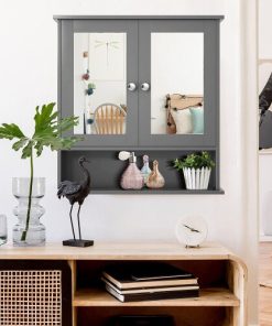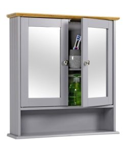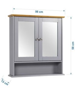 Features:Wooden 2 Door Mirror CabinetHigh Quality MDF BoardStylish Chrome HandleWall MountedKeep your bathroom looking stylish yet practicalEasy to assembleSelf assembly requiredColour: Grey/White