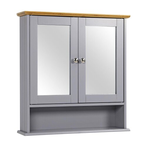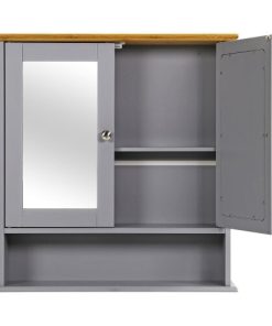 - Stylish Grey/White finish wooden bathroom cabinet with 2 mirrored doors & shelf