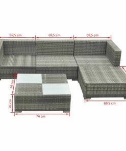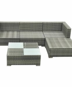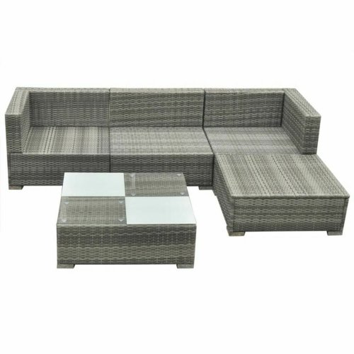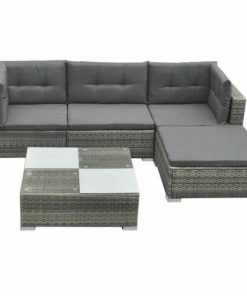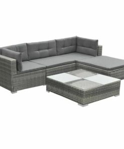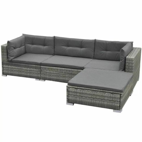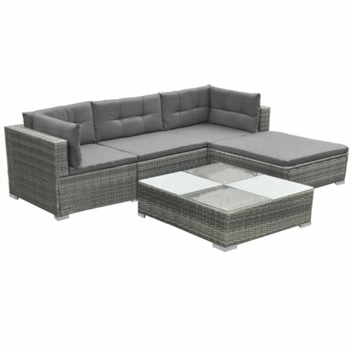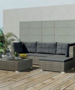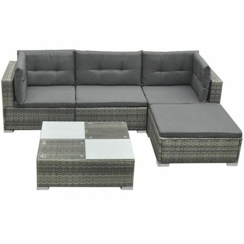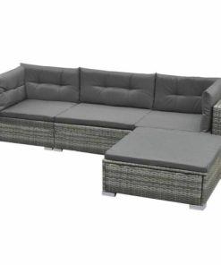 5pc vidaXL 42741 Rattan Garden Lounge Set – Grey | 4 Seater Rattan Sofa Set Description