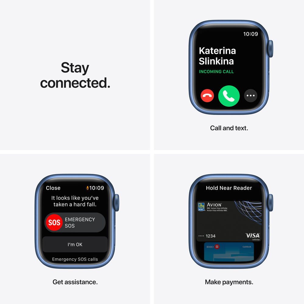 Everything you need. Everywhere you go. Just put on your Apple Watch and take off. Series 7 keeps all the things you care about front and centre with its larger screen.