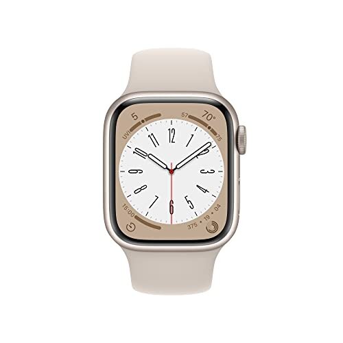 Apple Watch Series 8 (GPS 41mm) Smart watch – Starlight Aluminium Case with Starlight Sport Band – Regular. Fitness Tracker, Blood Oxygen & ECG Apps, Description