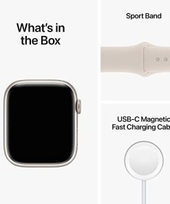 Apple Watch Series 8 (GPS 45mm) Smart watch – Starlight Aluminium Case with Starlight Sport Band – Regular. Fitness Tracker, Blood Oxygen & ECG Apps, Description