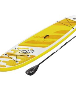 The engineering team at Bestway has crafted and fine-tuned each stand-up paddleboard, ranking them for overall maneuverability, tracking, stability and speed. This hobby combines physical activity with exploration and adventure. As SUP use and popularity increases all across the globe, Bestway provides a wide range of boards to choose from, there’s something for every type of rider. Both beginners and experienced riders can have a summer full of exploration. stand up paddle board: premium 10ft 6 paddle board maintains shape for increased buoyancy on the water drop stitch material: designed with drop stitch material for strong rigidity and durability; perfect for touring on the water non slip pad: inflatable board with non-slip traction pad provides a solid and stable foundation for comfort and steadiness travel bag & carry handle : travel bag included to transport your sup and convenient deck handle to easily carry the sup quick inflation: board can inflate in 10-12 minutes using the hand pump provided and deflate in less; weight capacity: 120 kg (243 lbs) “contents: paddle board, adjustable paddle, hand pump, travel bag, surf leash, repair kit; dimensions: 3.20 m x 76 cm x 12 cm / 10’6″” x 30″” x 4.75″”” ; Included components: Paddle board, paddle, hand pump, backpack, surf leash, repair kit.