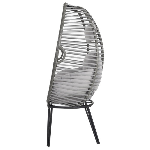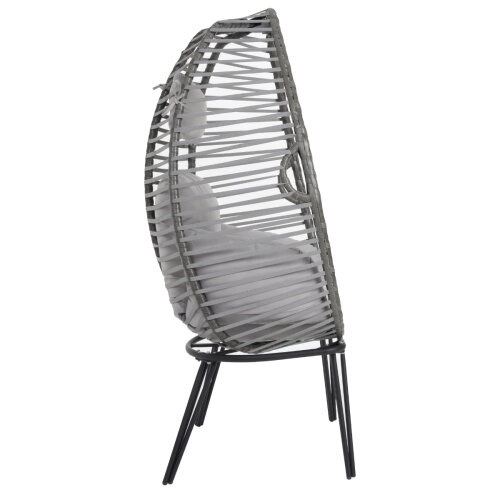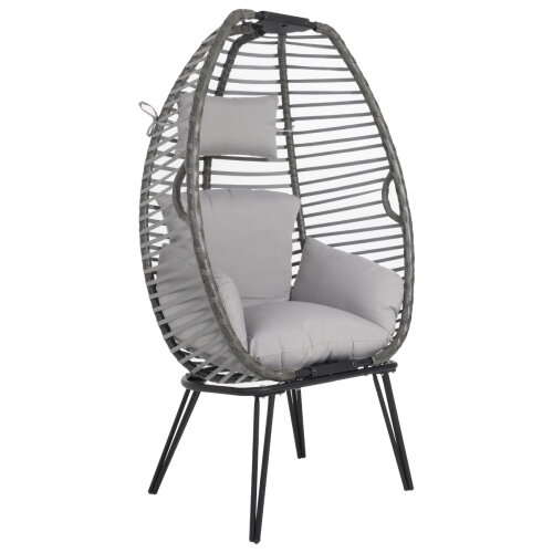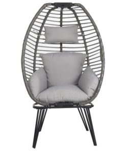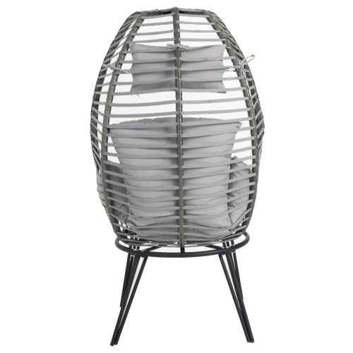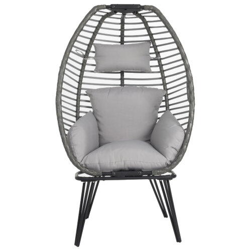 - Features : Contemporary egg shaped basket, Adjustable headrest with removable cover, Seat cushion which features back and side support with removable cover, Hairpin style black steel legs, Foldable basket for easy storage