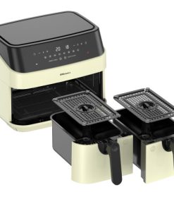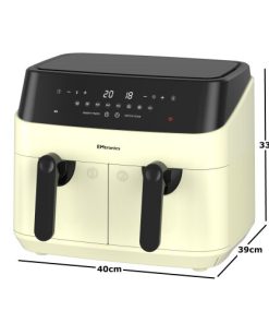 EMtronics Double Basket Air Fryer 9 Litre with 99 Minute Timer – Cream Description