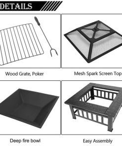 - ¡¾Safer Design¡¿:square garden fire pit design to ensure stability. The outdoor firebowl is equipped with a mesh cover to prevent burning ash and sparks from flying away. Equipped with poker, you can ignite the fire source and safely remove the mesh cover, double protection is more secure.