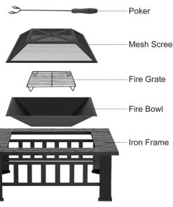 Buycitky fire pit (BBQ grill basket not included ) is constructed of heavy duty iron mesh and frame. The garden stove brazier is built in square shape for stability. This square fire pit features with mesh lid to prevent burning embers blowing and comes with a poker to stoke fire and remove the mesh lid safely. This is not only a practical item for home use, but also a good landscape for garden or courtyard.