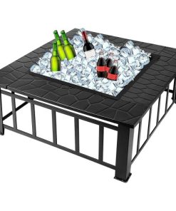 Buycitky Firepit Outdoor Fire Pits for Garden Large, 3 In 1 Square Fire Pit Table BBQ Grill, Ice Pit, Outside Heater, Metal Brazier Firepit and Firebowl for Camping Barbecue (Square)