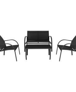 Harbour Housewares 4 Seater Metal Garden Sofa Furniture Set – Black