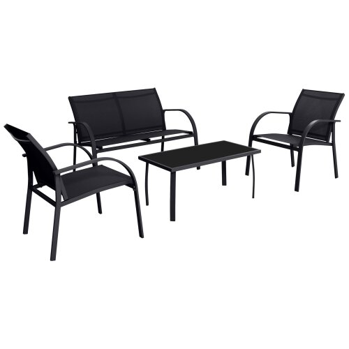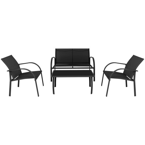 Harbour Housewares 4 Seater Metal Garden Sofa Furniture Set - Black