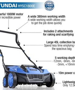 Hyundai 1800W Electric Lawn Scarifier / Aerator / Lawn Rake, 230V | HYSC1800E Description