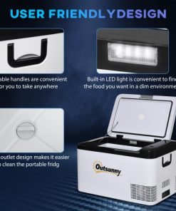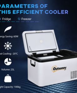 Keep food, drinks, and snacks ice cold or frozen with this portable refrigerator from Outsunny, whether you’re spending the day at the beach, going camping with friends, or enjoying a nice picnic outside. The 25L 12v fridge for campervan that can be plugged in and taken with you wherever you go to maintain an ice cold down to -20. And with a digital temperature display that lets you dial in the electric thermostat on the go, you can use it to match your specific needs quickly and easily.