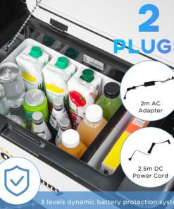 - SMART BATTERY PROTECTION & DUAL-USE: Equipped with 110/240V AC and 12/24V DC adapters, which can be used independently or in the car. When the measured DC voltage is below the cut-off value, the portable 12v fridge freezer for car will shut off to prevent battery depletion