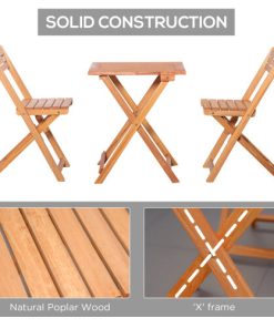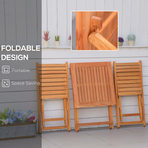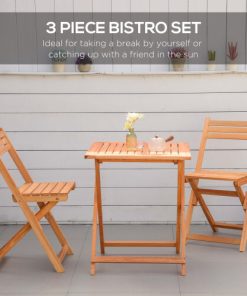 Outsunny 3Pcs Garden Bistro Set, Folding Chairs and Table Set Teak Description