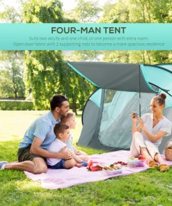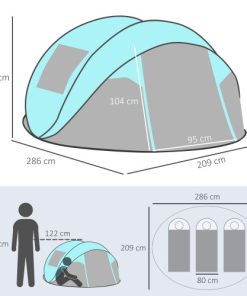 - 4 person tent: Pop up tent suitable for family and friend adventures. Brings everyone together for fun memories day and night. Sewn-in groundsheet: Ensuring you stay dry and cosy throughout your camping trip.
