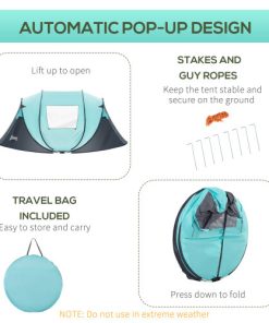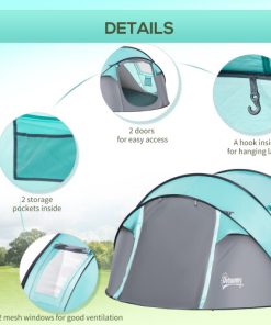 Outsunny 4 Person Camping Tent Pop-up Design w/ Mesh Vents for Hiking Description