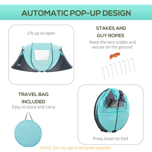 - Pop-up design, weather resistant fabric: Simply take out the bag and lightweight tent will open. Material will keep you sheltered in light-mild weather.