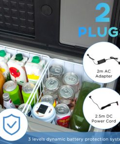 - SMART BATTERY PROTECTION & DUAL USE: Equipped with 110/240V AC and 12/24V DC adapters, which can be used independently or in the car. When the measured DC voltage is below the cut-off value, the 12v compressor fridge for car will shut off to prevent battery depletion