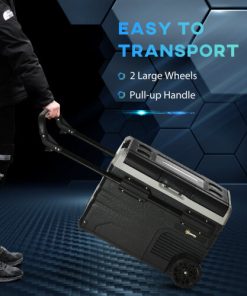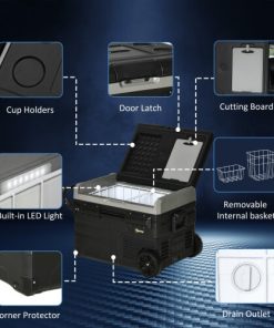 - USER FRIENDLY & PORTABLE: Featuring 2 large wheels and a pull-up handle, this portable car fridge is convenient for you to take anywhere. The removable basket is convenient for you to store or take out the food. Built-in LED light is convenient to find the food you want in a dim environment. Drain outlet design makes it easier to clean the portable portable freezer