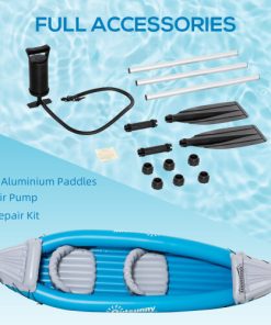 - ACCESSORIES: Includes a repair kit to fix any damages, an air pump for quick inflation and two aluminium paddles for better stability and control.