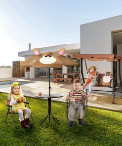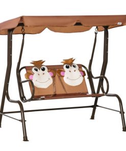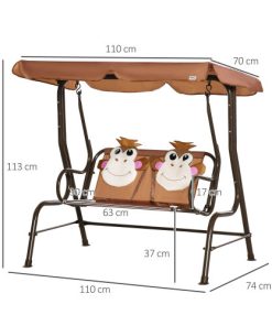 Kids will have fun outdoors with this Outsunny swinging bench. With two seats, they will enjoy games with their friend, whilst the seatbelts keep them secure. It features a cool monkey design that creates a fun and vibrant atmosphere for children – they’ve even got shade for those extra hot days, thanks to the adjustable canopy. A strong and solid structure, its metal frame ensures the bench can be used daily – suitable for indoors and outdoors.