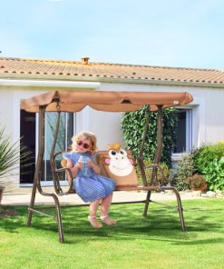 Outsunny Two-Seat Kids Canopy Swing Chair w/ Adjustable Awning Description