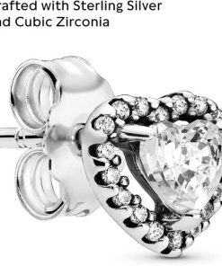 Pandora Jewelry Elevated Heart Stud Cubic Zirconia Earrings in Sterling Silver Description