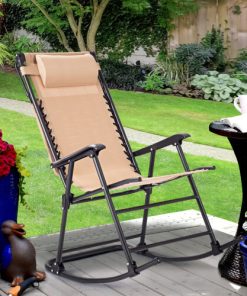 Our foldable?rocking chair brings pleasure?and comfort to your outdoor activities!?Made of powder coated steel frame and durable?fabric, this rocker chair is?sturdy enough for long service time. This folding rocking chair adopts ergonomic design?and the bottom locking system?ensures safety. Foldable design allows?you to conveniently store and transport. Paired with soft headrest and spacious seat, it adds additional comfort to your?body. With simple and practical design, the rocking chair is ideal for outdoor or indoor places, such as living room, backyard and garden.