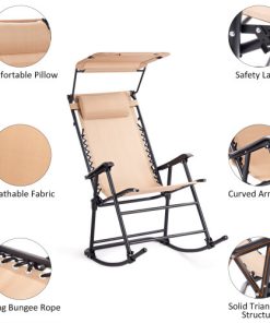Rocking Lounge Chair with Shade Canopy Folding Rocker Chair Description