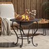 - This round-shaped cast iron fire pit bowl is an attractive way to add warmth and ambiance to garden spaces.