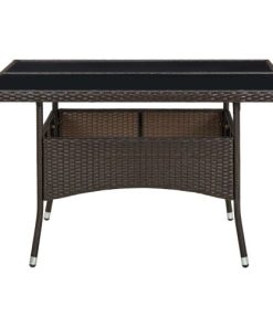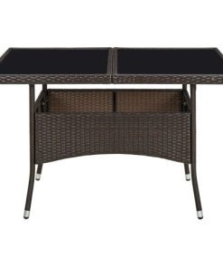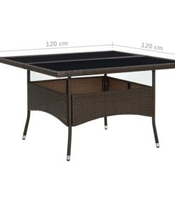 vidaXL Outdoor Dining Table Brown Poly Rattan and Glass Garden Dinner Table Description