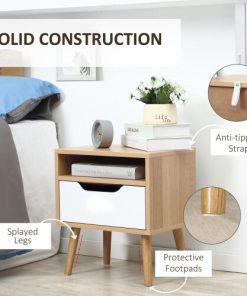 - STURDY: Structure made from particle board for durability. Angled legs help keep nightstand steady and balanced, with footpads to protect your floor lightly. Anti-tipping straps for safety.