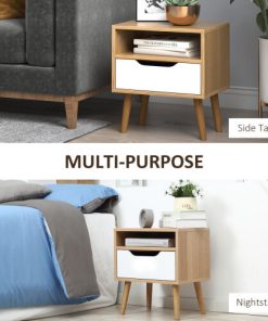 White Bedside Table Drawer Cabinet Bedroom Storage Nightstand Shelf UK Description